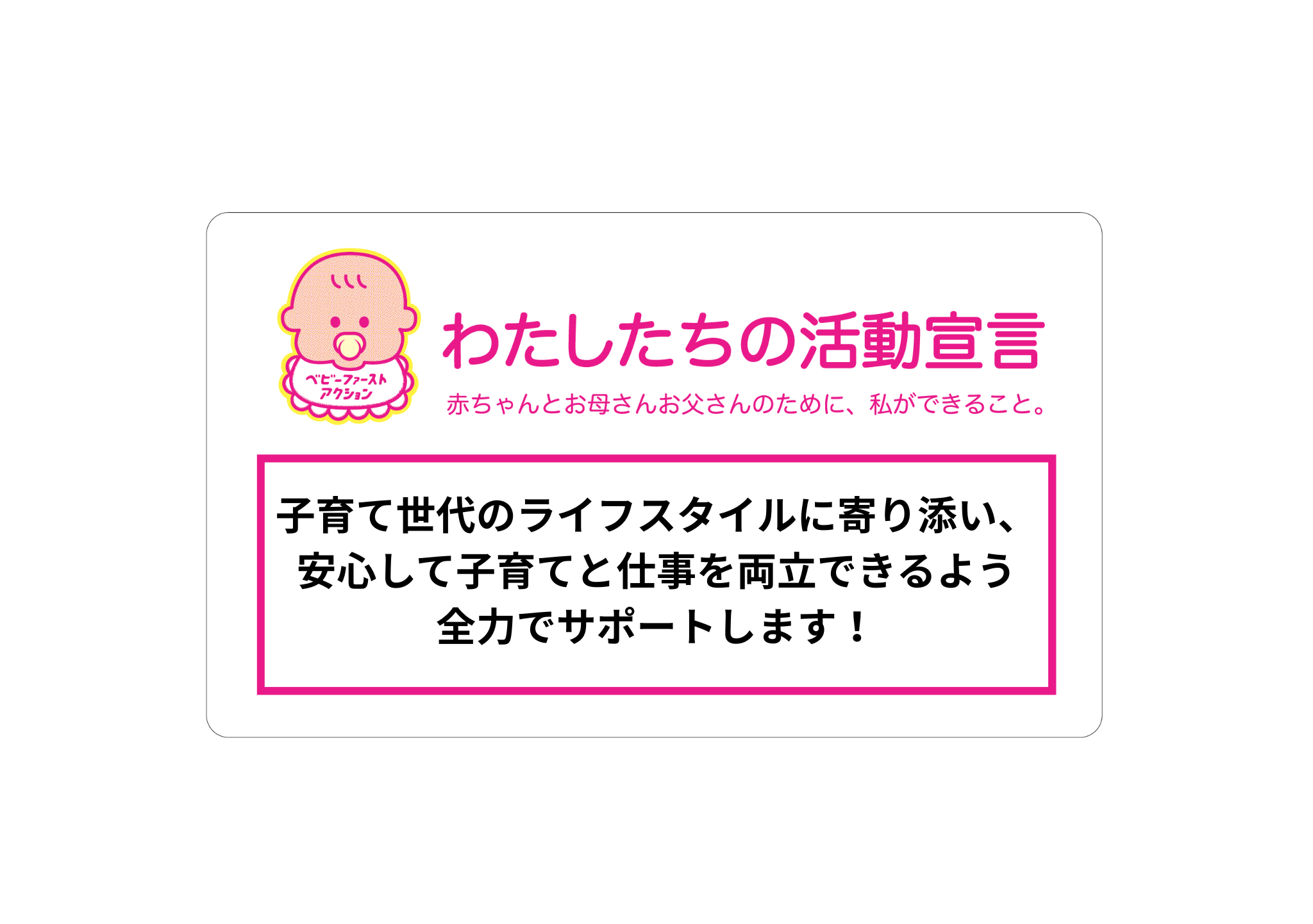 企業・個人 アジアンウエイ株式会社 2025.06.17 活動宣言 子育て世代のライフスタイルに寄り添い、安心して子育てと仕事を両立できるよう全力でサポートします! アクションプラン ACTION01 男女問わず、すべての従業員が安心して育児休業を取得できる環境づくりを推進し、取得しやすい体制の整備に努めてまいります。 企業HPへ Post Share Hatena LINE RSS feedly Pin it note