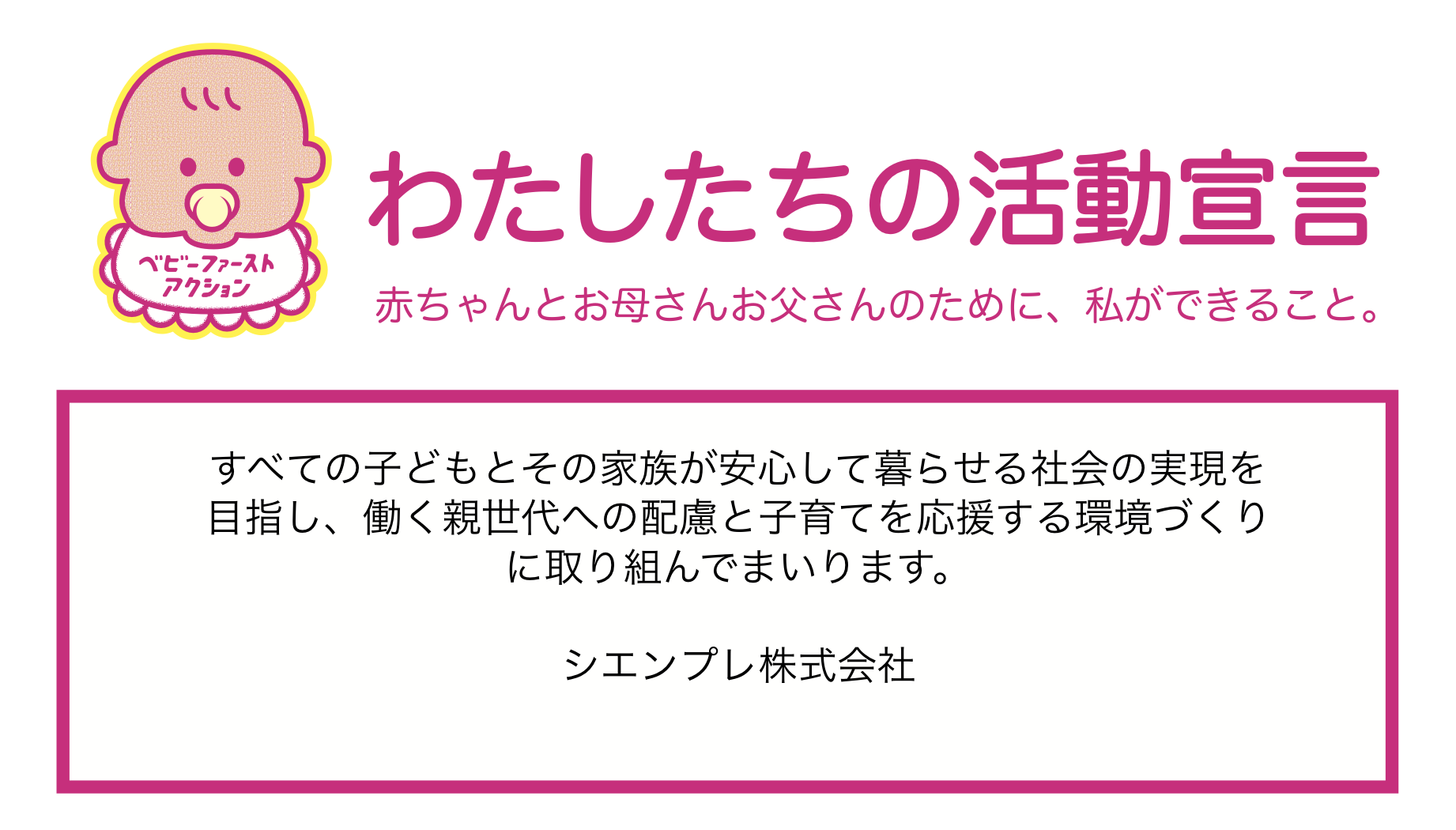 すべての子どもとその家族が安心して暮らせる社会の実現を目指し、働く親世代への配慮と子育てを応援する環境づくりに取り組んでまいります。