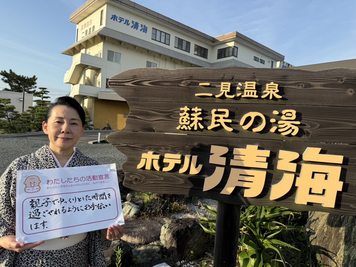 企業・個人 株式会社ホテル清海 2025.10.23 活動宣言 親子でゆっくりとした時間を過ごせるようにお手伝いします。 アクションプラン ACTION01 大浴場にてベビーベッドの用意 ACTION02 食事場所にてベビーチェアの用意 Post Share Hatena LINE RSS feedly Pin it note