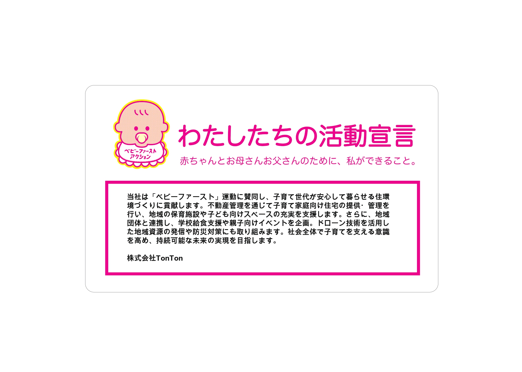 当社は、「ベビーファースト」運動に賛同し、子どもを産み育てや