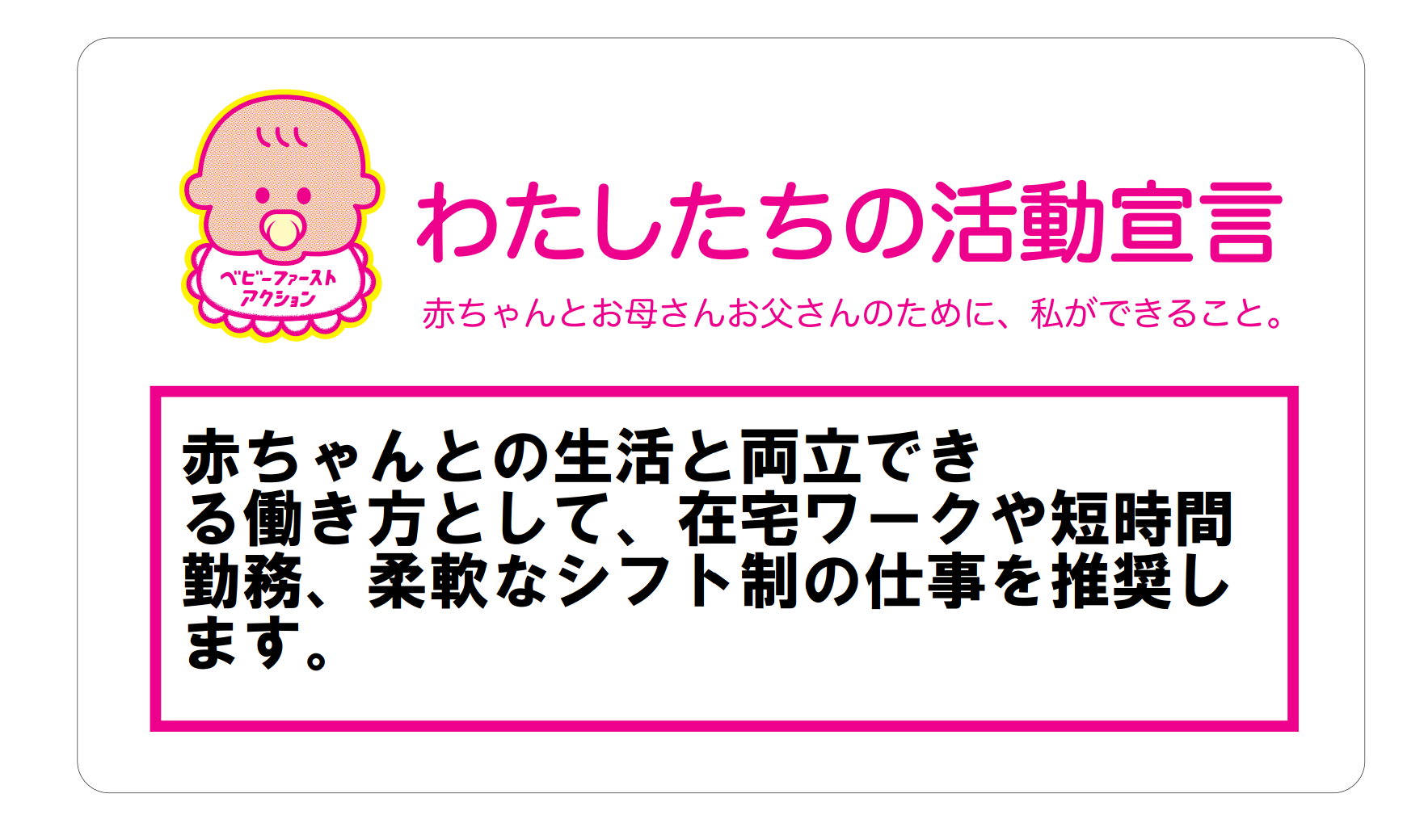 企業・個人 相続専門なみかわ税理士事務所 2025.08.27 活動宣言 赤ちゃんとの生活と両立できる働き方として、在宅ワークや短時間勤務、柔軟なシフト制の仕事を推奨します。 アクションプラン ACTION01 社内にポスターを掲載するなどして周知徹底します。 企業HPへ Post Share Hatena LINE RSS feedly Pin it note