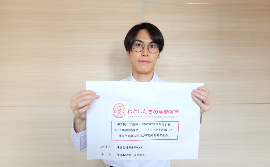 産休・育休の取得推奨。短時間勤務・リモートワークの実施。webサイトでベビーファースト運動を拡散。