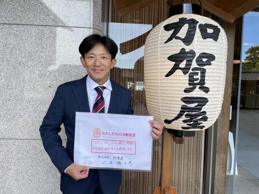 ベビーファースト運動へ参画することで、コロナで疲弊した旅行業界に追い風を吹かせたい。そして、周辺の旅館へもベビーファースト運動へ推進し、赤ちゃんにやさしい温泉街にして行きたい!との思いから宣言をして下さいました。