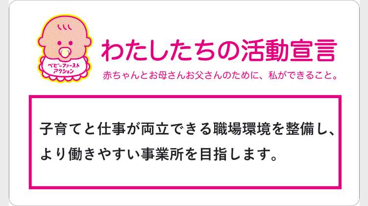 企業・個人 合同会社Smiles. 2024.07.30 2024.09.03 活動宣言 子育てと仕事が両立できる職場環境を整備し、より働きやすい事業所を目指します。 市橋 卓也 アクションプラン ACTION01 ・突発的な休暇が必要な際にも、柔軟に対応できる人員配置の整備 ACTION02 ・状況の把握や個別相談がしやすく心理的安全性の高い職場環境の整備 企業HPへ Post Share Hatena LINE RSS feedly Pin it note