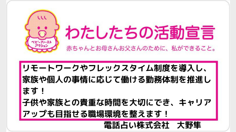 リモートワークやフレックスタイム制度を導入し、家族や個人の事情に応じて働ける勤務体制を推進します!
