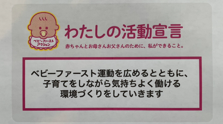 ベビーファースト運動を広めるとともに、子育てをしながら気持ちよく働ける環境づくりをしていきます。