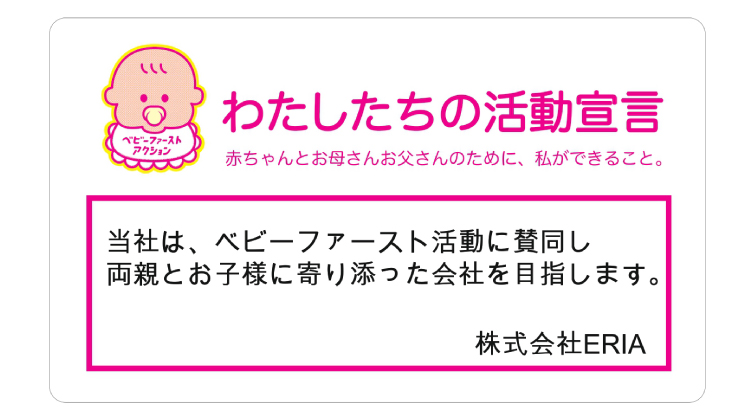 企業・個人 株式会社ERIA 2024.03.11 2024.05.18 活動宣言 当社は、ベビーファースト活動に賛同し両親とお子様に寄り添った会社を目指します。 銘苅誠也 アクションプラン ACTION01 ・ベビーファースト運動普及に向けて積極的に周知いたします ACTION02 ・テレワークや有給取得数の向上などを目指します 企業HPへ Post Share Hatena LINE RSS feedly Pin it note
