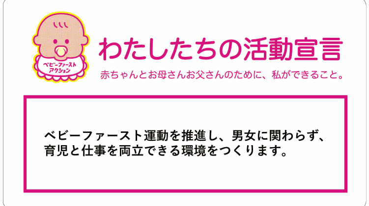 ベビーファースト運動を推進し、男女に関わらず、育児と仕事を両立できる環境をつくります。
