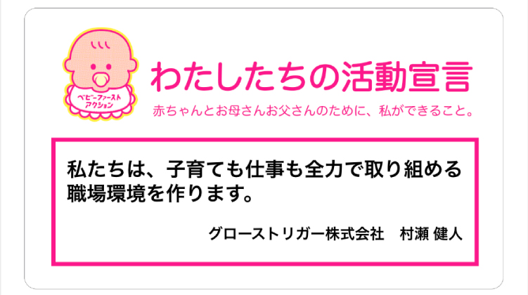 企業・個人 グローストリガー株式会社 2024.07.25 2024.09.02 活動宣言 私たちは、子育ても仕事も全力で取り組める職場環境を作ります。 グローストリガー株式会社 村瀬 健人 アクションプラン ACTION01 1)テレワークの推進 ACTION02 2)フレックスタイムの導入 企業HPへ Post Share Hatena LINE RSS feedly Pin it note