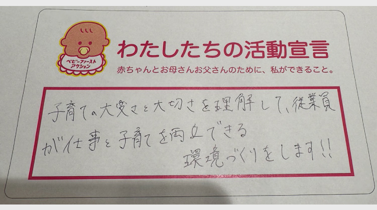 子育ての大変さと大切を理解して、従業員が仕事と子育てを両立できる環境づくりをします!!