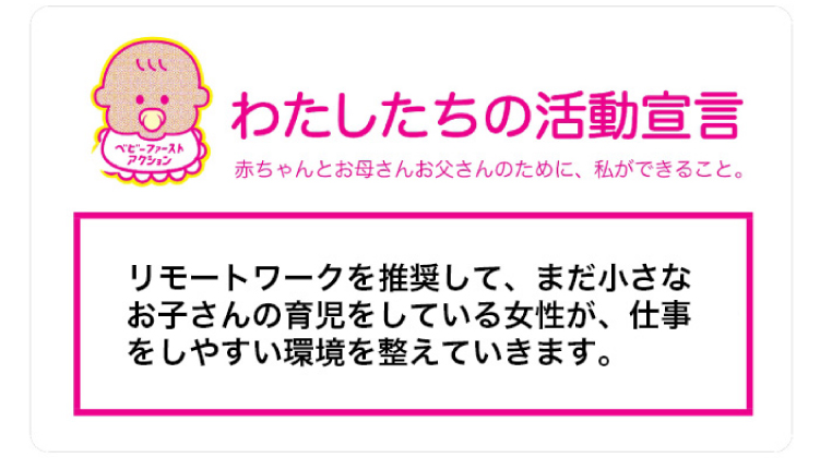 企業・個人 キナバル株式会社 2024.01.30 2024.04.25 活動宣言 リモートワークを推奨して、まだ小さなお子さんの育児をしている女性が、仕事をしやすい環境を整えていきます。 松平眞爾 アクションプラン ACTION01 1.リモートワークで勤務地を選ばない働き方を拡充します。 ACTION02 2.育児中の女性を積極的に採用します。 企業HPへ Post Share Hatena LINE RSS feedly Pin it note