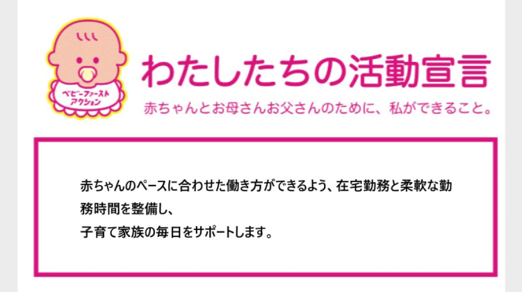 赤ちゃんのペースに合わせた働き方ができるよう、在宅勤務制度と柔軟な勤務時間を整備し、