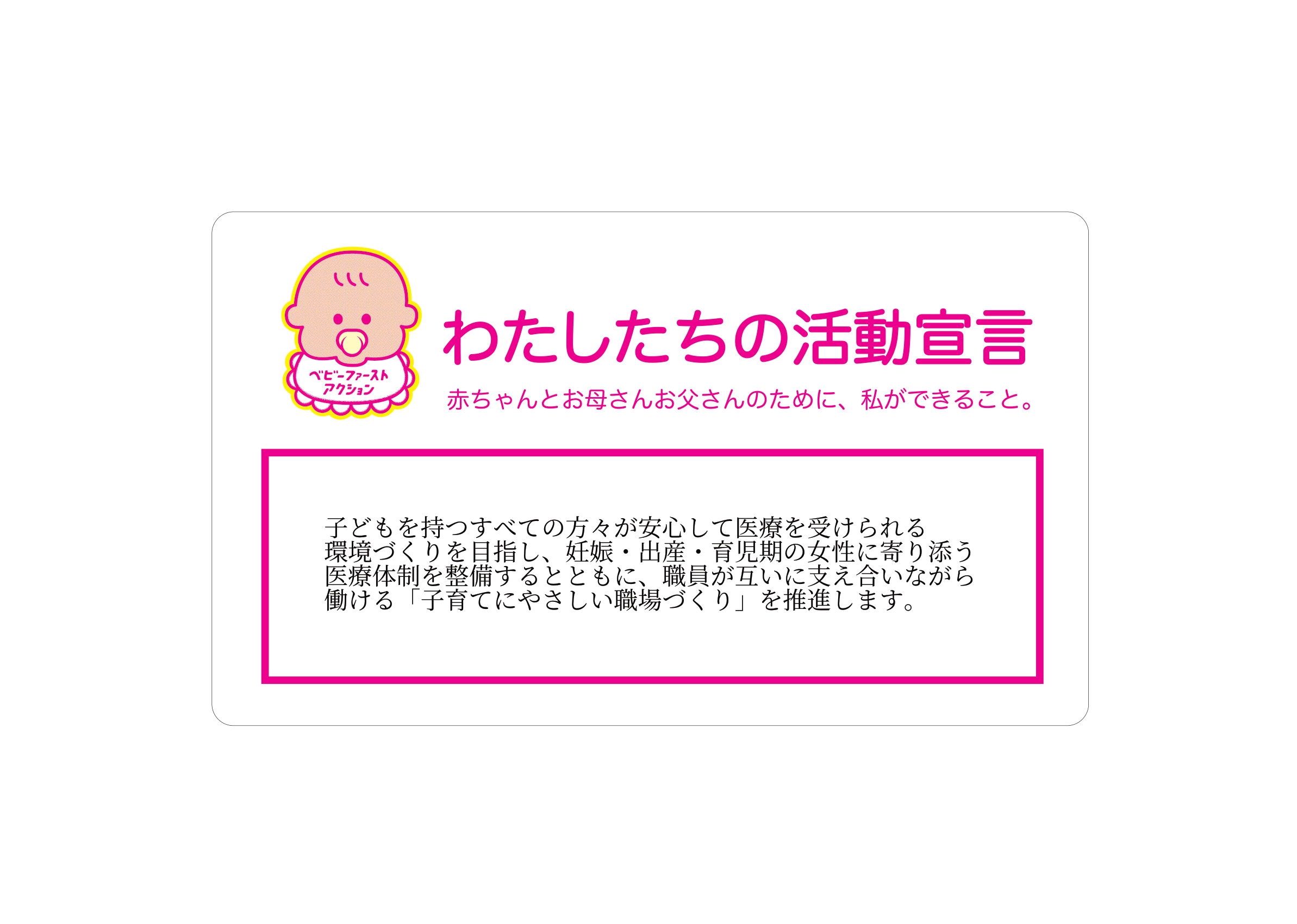 企業・個人 S.T styleクリニック 2025.11.14 活動宣言 子どもを持つすべての方々が安心して医療を受けられる環境づくりを目指し、妊娠・出産・育児期の女性に寄り添う医療体制を整備するとともに、職員が互いに支え合いながら働ける「子育てにやさしい職場づくり」を推進します。 アクションプラン ACTION01 育児と仕事の両立を支援する勤務体制を整備し、子育て世代の職員がキャリアを継続できる職場環境を推進します。 企業HPへ Post Share Hatena LINE RSS feedly Pin it note