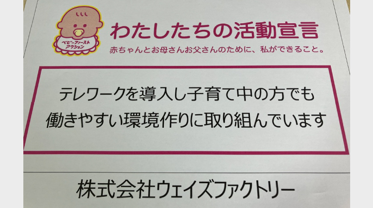 企業・個人 株式会社ウェイズファクトリー 2023.06.01 2024.03.08 活動宣言 テレワークを導入し子育て中の方でも働きやすい環境作りに取り組んでいます 岸 憲太郎 アクションプラン ACTION01 1.テレワークを導入 ACTION02 2.労働時間の短縮や柔軟な勤務時間制度の導入 ACTION03 3.主婦層の積極的採用 企業HPへ Post Share Hatena LINE RSS feedly Pin it note